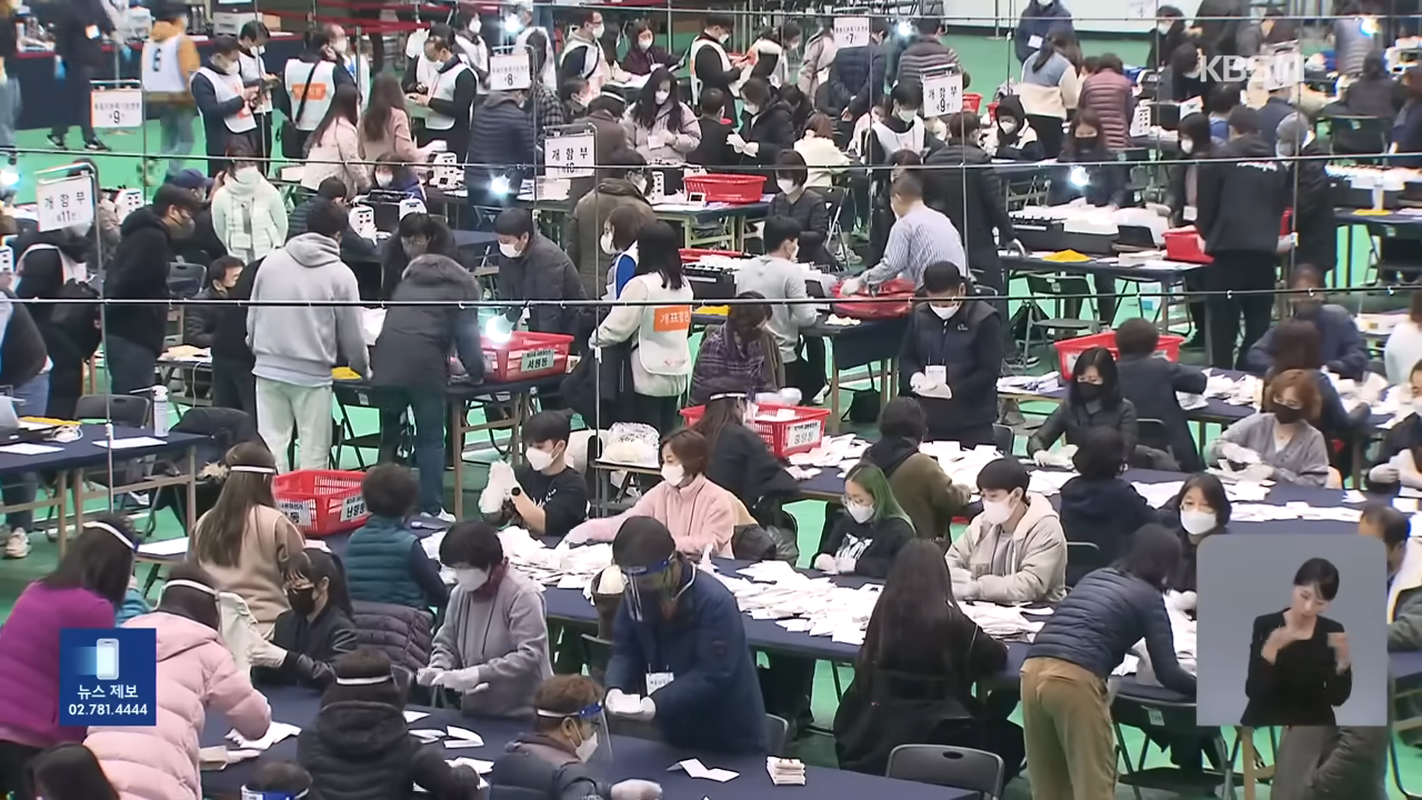 투표소에 갔는데 사람들이 줄 서서 기다리고 있길래 다른 사무원 분이 벽에 붙은