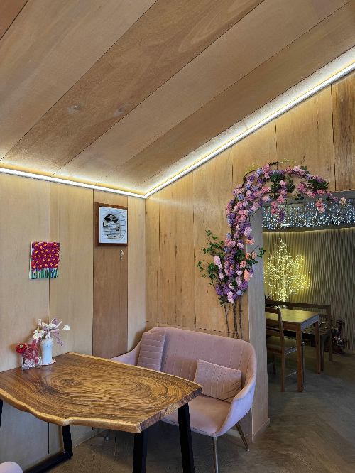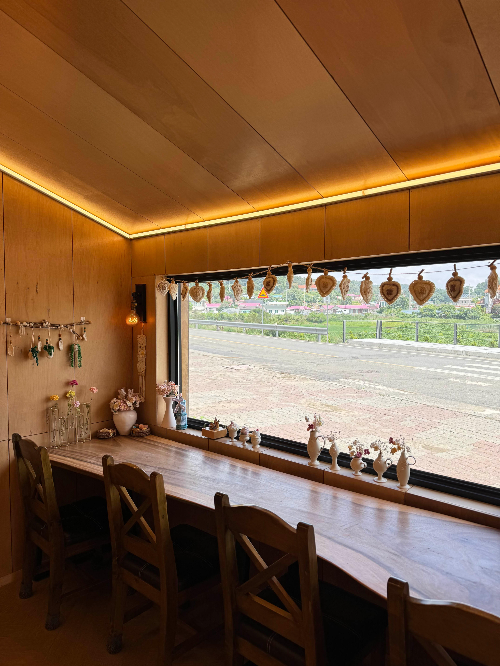카페 내부 사진은 우드톤 인테리어 이면서