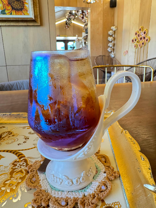 유럽 도자기처럼 엔틱 하며 우아한 느낌으로 디저트를 먹을 수 있었어요.