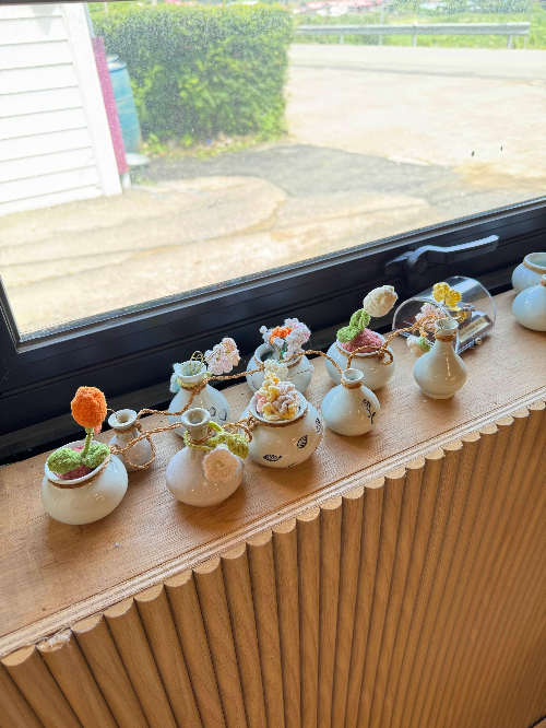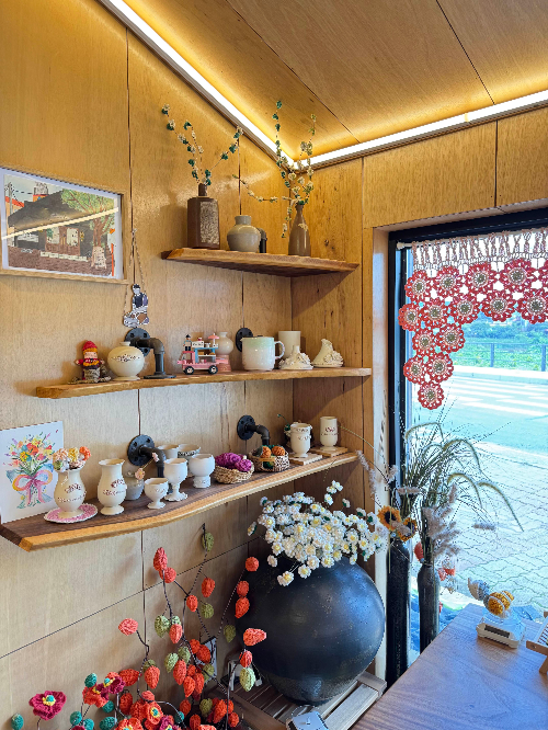 아기자기한 도자기와 다양한 뜨개질 소품을 전시하고 있는데