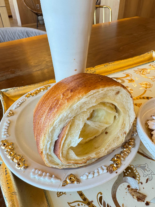 굴뚝빵, 생크림, 아이스 컵을 전부 도자기 그릇으로 사용하는데요.