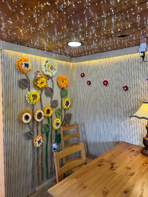 뜨개질로 다양하게 소품으로 연출하여서 따뜻한 감성이었어요.