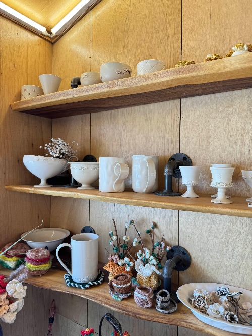 아기자기한 도자기와 다양한 뜨개질 소품을 전시하고 있는데