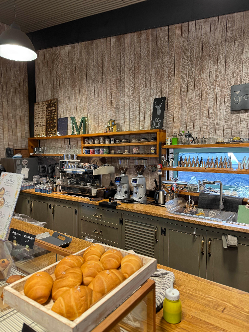 카페 주방인데 인테리어가 정말 인상 깊었어요.
