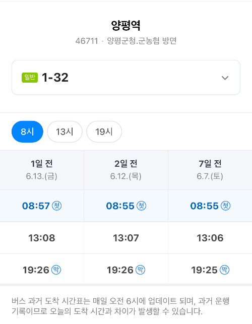 아침 8:55분이 시내버스 첫차인데요.