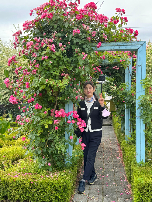 장미 터널에서 엄마랑 같이 셀카 촬영을 하였어요.