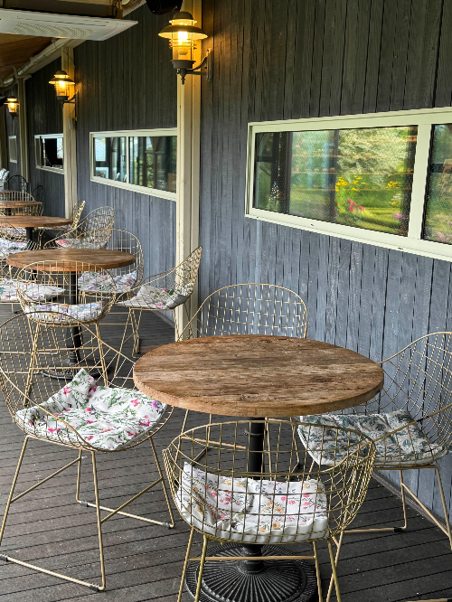 화장실을 나오면 유럽식 정원이 보이는 스텐딩 테이블도 있네요! ㅎㅎ